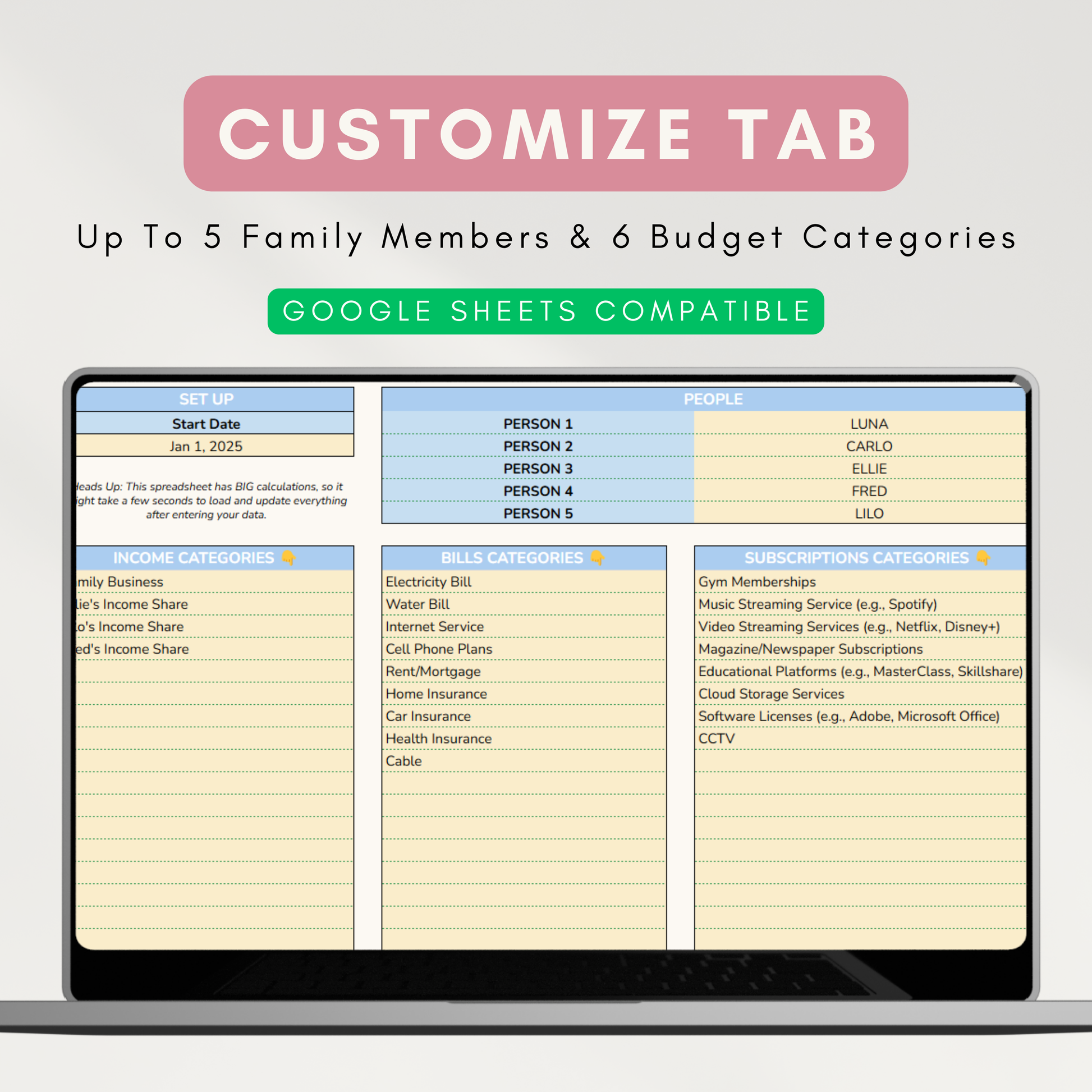 Couple & Family Budget Planner | Contribution Setup, 12-Month Automated Financial Planning (Google Sheet Template)